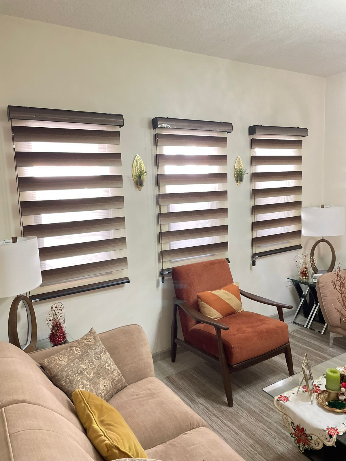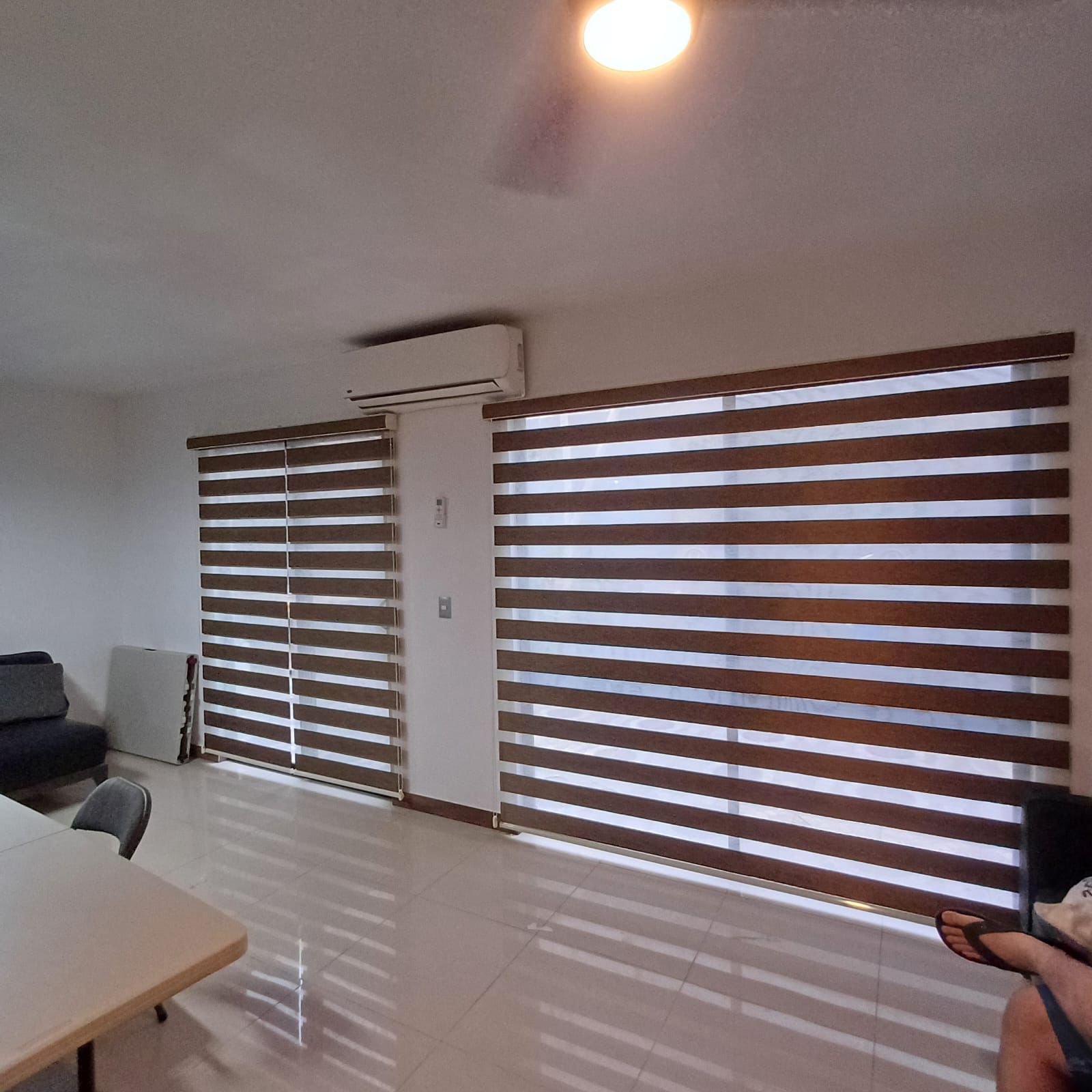 Persianas: Amplia variedad como Sheer elegance, Enrrollables, ripplefold Blinds, madera, Shutter, panel japonés, todo para controlar la privacidad e iluminación.